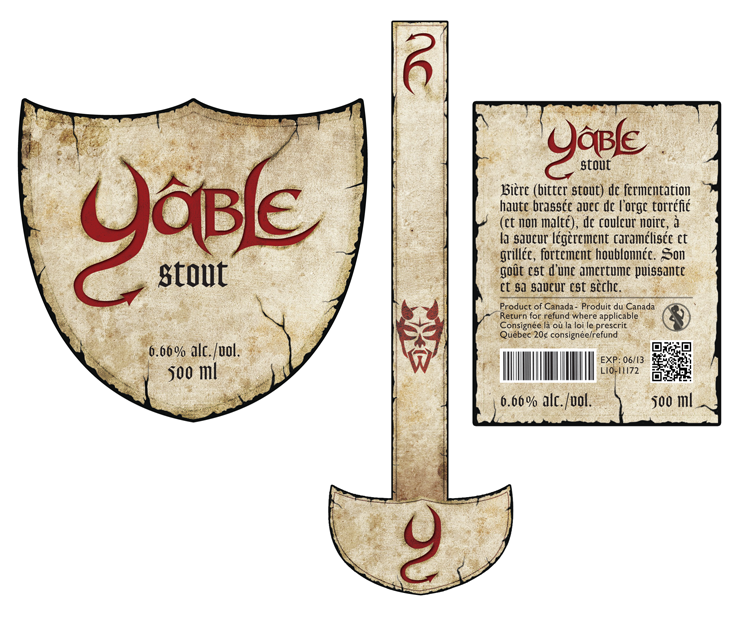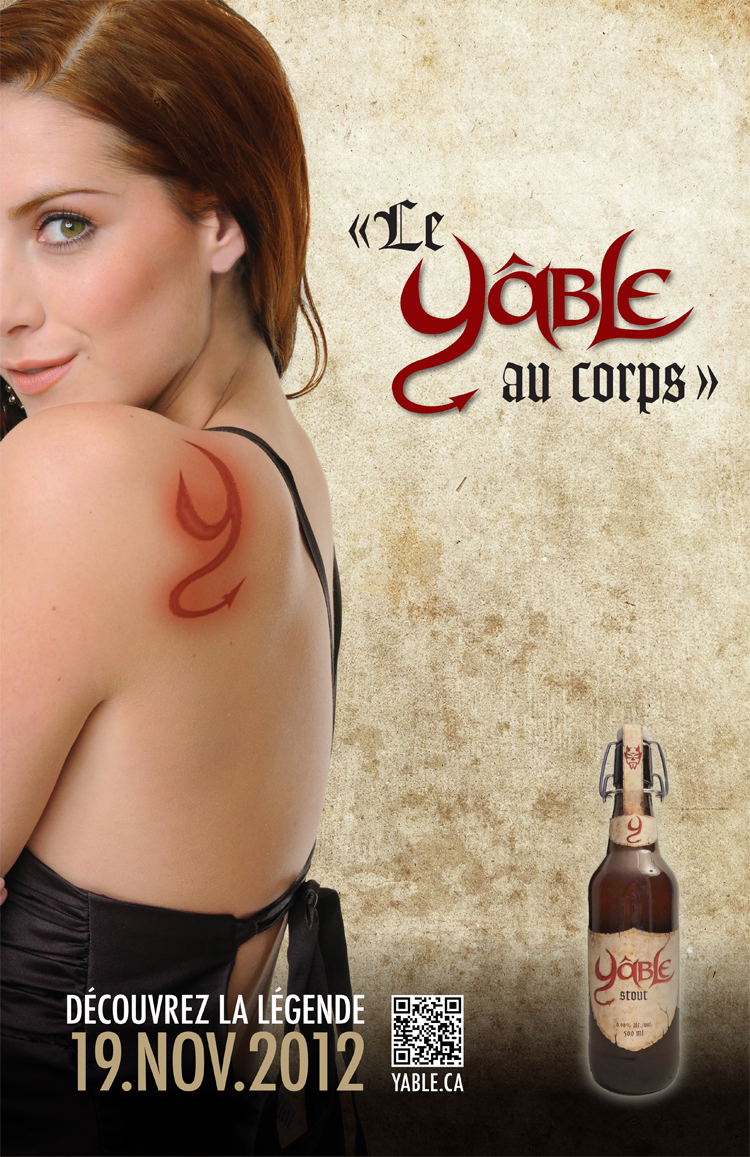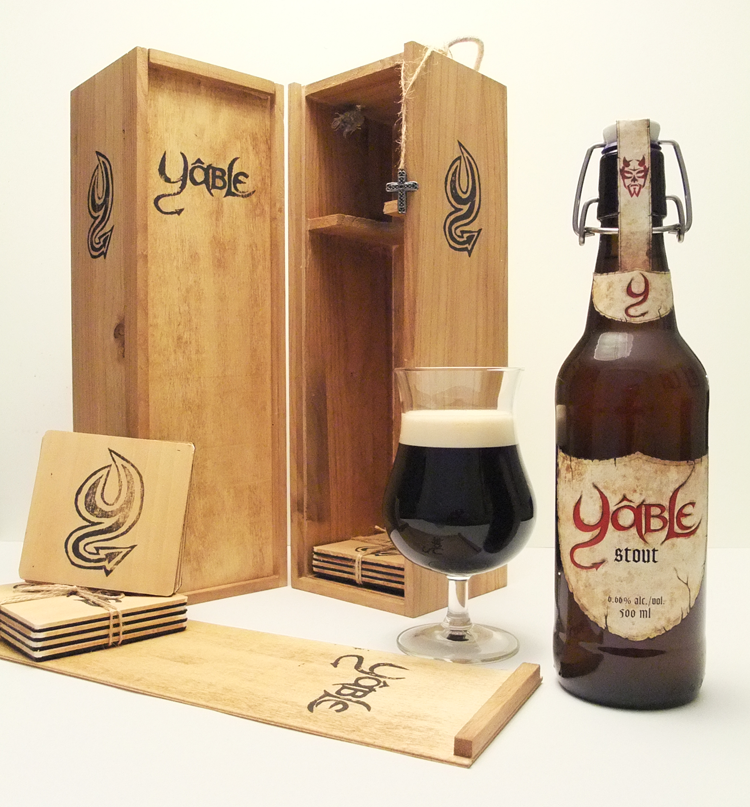 Pour ce projet d'image de marque d'une bière, un logo, une étiquette, un emballage, un slogan, une campagne publicitaire ainsi qu'un livre de normes ont dû être développés. Le concept d'une bière artisanale québécoise a été créé autour du mot Yâble (jargon de «diable»). Un logotype et un emballage inspirés des premiers colons ont été conçus, puis une campagne publicitaire a été développée autour d'une légende québécoise écrite spécialement pour ce projet. Une version flash du cahier méthodologique est dispobible en cliquant sur la dernière image.