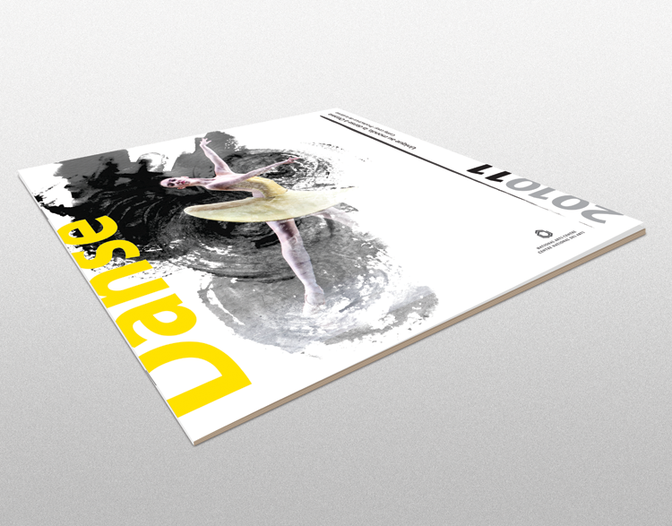 L’objectif de ce projet était de repenser le design de la brochure de danse de la saison 2010-2011 du Centre national des arts (CNA) d’Ottawa. Le concept derrière cette brochure est une métaphore artistique entre la danse et la peinture : « Les danseurs sont les pinceaux qui peignent la toile qu’est la scène ». Chaque coup de pinceau a été choisi afin de bien représenter et mettre en valeur le mouvement du danseur.